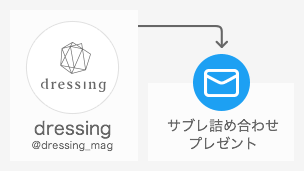 - STEP1: Twitterにログインし、dressing公式アカウント@dressing_magをフォロー