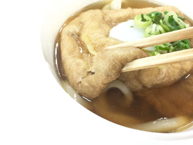 出来立てあつあつを持ち帰り!大判きつねのきつねうどん550円(税抜)