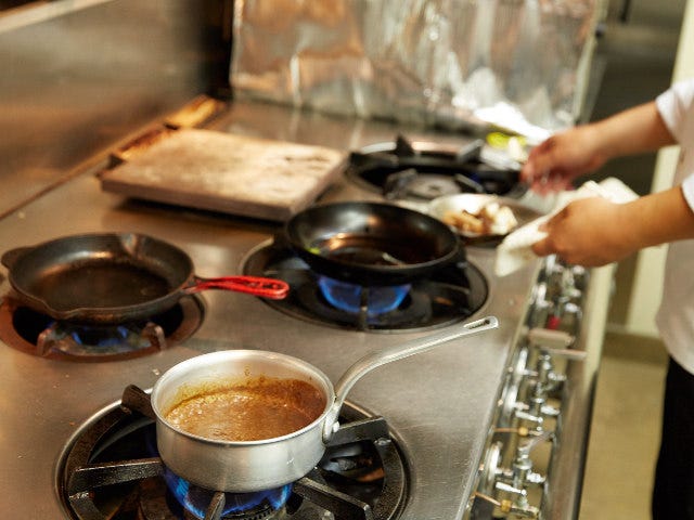 2.残った骨はブロード(出汁)用として、水120ccと塩を入れて2時間ほど煮出す。(ブロードをとるのが難しければチキンスープ120 ccを用意する)