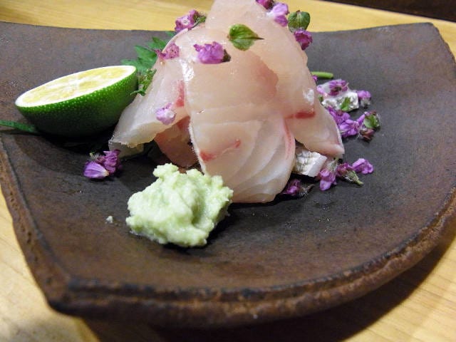 単に「サラダ」と書かれたものを頼むと、茹で玉子と胡瓜が覗くマヨネーズ色のひと皿。しかし、中にゴロゴロ入っていたのは蒸し蚫だった。「コロッケ」はジャガイモではなく、百合根でできていた。「塩辛」を頼むと、何やら真っ黒い物体が出現。