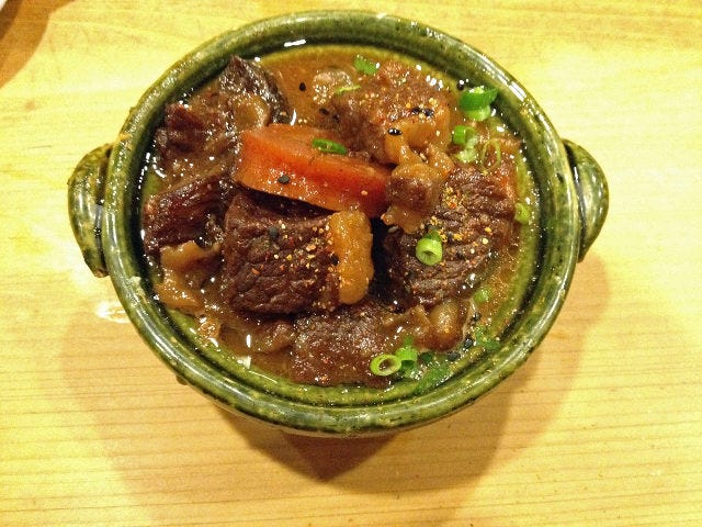 下町ハイボールのベースは甲類焼酎、だから、合成の梅エキスでウィスキーの色に染める。しかし、かねますのハイボールはウィスキーベースなのに、予めウィスキーに梅エキスが投入され「ハイボールの素」になっている。グラスに氷を入れ、その「素」を投入、下町ならではの強炭酸で一気に満たす。フォワグラやフカヒレまで登場するかねますの料理には、このハイボールが良く合う。「牛にこみ」も、ここではモツでもスジでもなく、高級牛のビーフシチュー状態。清酒ではなく、ハイボールの強炭酸で喉を洗いながら、めくるめくメニューに食らいつこう。たしかそう言えば、『タモリ倶楽部』のハイボールの回はここが舞台だった。