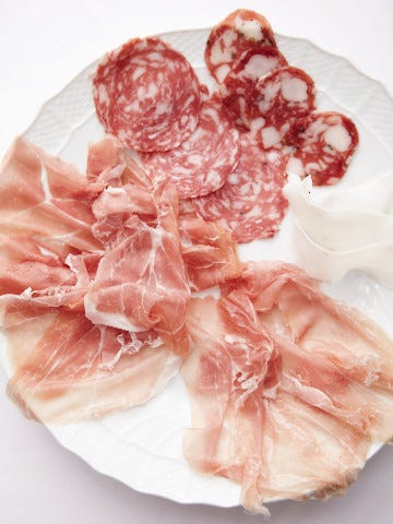 岐阜「ボン・ダボン」のペルシュウ(パルマの製法でつくる生ハム)だの、トスカーナ州コロンナータのラルド生産者がつくるパンチェッタにクラテッロ・ジヴェッロという名だたる生ハムを揃えているのは以前と変わらないが、新店では盛り合せでなく1種類ずつ、切ったそばからわんこ蕎麦状態で現れる。