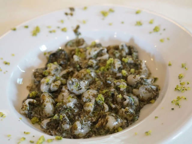「マンジャペッシェ」の清水シェフが料理に仕立てた。海苔のパスタに散らした柚子胡椒はどうだろう。