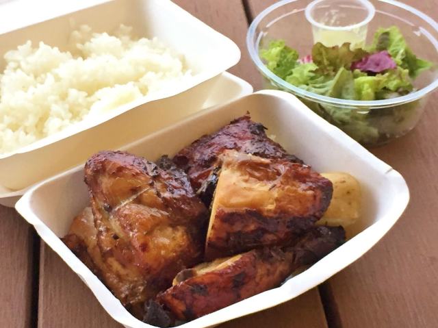 その看板メニューの「ロティサリーチキン」は、夜だけでなくランチでも気軽に楽しめるうえ、テイクアウトも可能。チキンのサイズは1/2(ハーフ)と1/4(クォーター)が選べる。