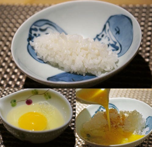 次は小振りな、土佐ジローの卵をかけて。卵はコシを切りすぎないように少しだけ混ぜ、ご飯に醤油を一垂らししてから、よくよく混ぜる。