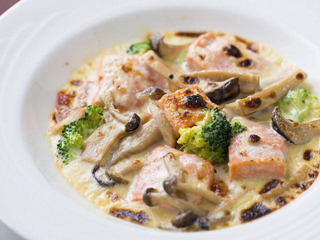 とろけるようなホワイトソース、口の中でほぐれるサーモン、茸の食感、それらを包む香ばしいチーズの香りが、食卓を盛り上げてくれそうだ。