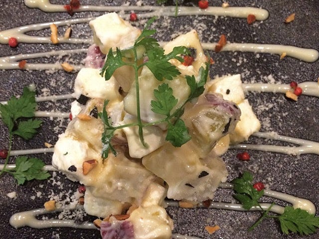 肝心の味はというと、クリームチーズのまろやかさとさつまいもの自然な甘さが、特製マヨネーズと絡まりあって相性抜群。この特製マヨネーズ、作り方さえ覚えておけば魚料理にも活用できるとのこと。