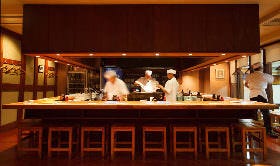 日本で初めて焼鳥店として『ミシュランガイド東京 2010』一つ星に輝いた名串焼き店。奥久慈軍鶏を使った串焼きのおまかせコースは6,300円と8,400円の2種。前菜、レバーのパテ(名物)、串焼き8本、山椒焼き、親子丼(小)は共通で、後者には、ささみの梅しそ焼き、焼きチーズ、プリンなどが加わる。ひととおりのコースに追加する形で、その他単品メニューや串焼きメニュー多数。ドリンクは生のプレミアム・モルツ750円、アウグスビール850円のほか、日本酒は神亀数種や竹鶴、天狗舞など。ワインは膨大な種類があるので、事前に電話か現地で確認を。