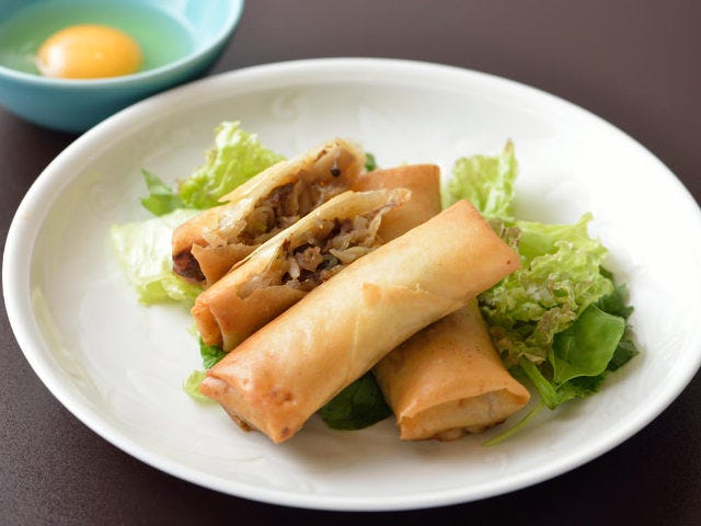 すき焼きと同じようにしっかりとした味付けなので、溶いた玉子にくぐらせて食べるとより一層まろやかに味が変化。割り下で煮込んだ材料を市販の春巻きの皮で巻いて揚げるだけなので、難しい作業がないのも魅力的だ。レシピではレンコンを使用してあるが、中に入れる野菜を季節ごとに旬の食材に変えても良い。見た目は普通の春巻きと変わらないのに実はすき焼き味、という意外性もポイントが高い。