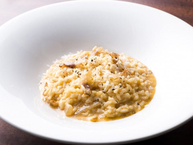 日本最大級の料理人コンペティションRED U-35 2013ではファイナリストにのみ贈られるゴールドエッグ賞を受賞。現在はシンガポールのタンジョンパガーで、「TOKYO ITALIAN」をテーマに日本食材ときめ細かな職人技を活かしたイタリアンレストラン「Terra」を営む中原勢太シェフにご紹介いただいたのは、卵たっぷりの「濃厚カルボナーラリゾット」。