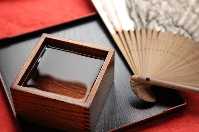 木製の升、徳利とお猪口。日本酒のスタイルは世界的に見ても独特だ。