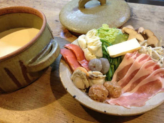 よりおいしく仕上げるポイントは、あっさりした食材ではなく、比較的主張のある食材を選ぶこと。例えば、大根より牛蒡や人参、白身魚よりも鮭など。鍋スープの味付けがクリーミーなので、濃い味の具材の方が調和がとれ、ダシと素材、それぞれの味を活かすことができる。仕上げに入れるバターによって、コクと満足感もアップ。