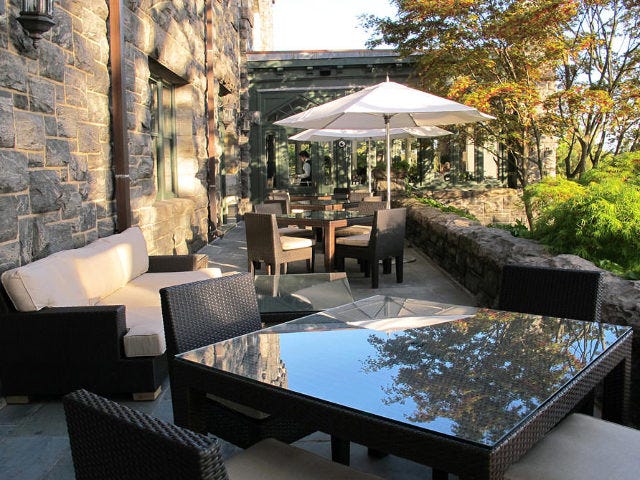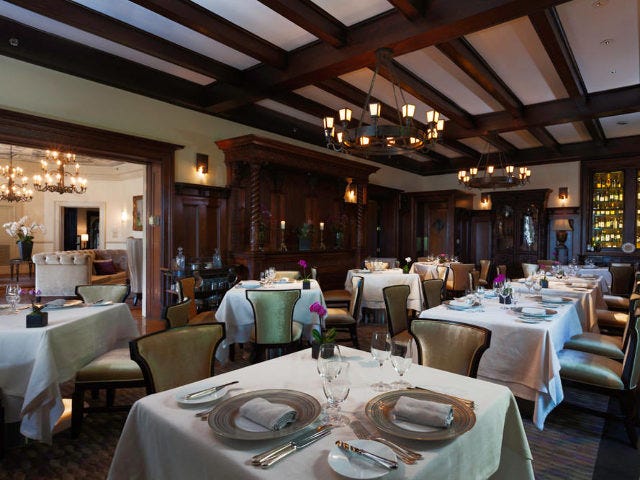 エクウスには3つの部屋がある。明るい日差しが差し込み、ハドソン川を眺めながら食事のできるガーデンルーム、クラシックで格調高いオークルーム、マホガニーの本棚や暖炉があるライブラリーだ。バーで軽く飲むこともできるし、天気がよくて暖かければテラスでくつろぐことも可能だ。