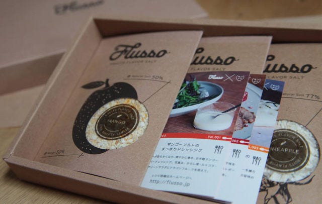今年9月に発売されて以来、TVをはじめメディアでも多く取り上げられた、凍結粉砕したドライフルーツを旨みある天然塩と合わせたフルーツソルト「Flusso(フルッソ)」がブームの発信源。パイン、マンゴーといった種類があり、塩気とともにフルーツの酸味や旨みを活かせるので料理への汎用性も高い。肉料理のアクセントや下味はもちろん、洋風ソースへの応用にも適している。和食とも好相性で、天ぷらや刺し身と合わせても素材の良さを引き出せる。