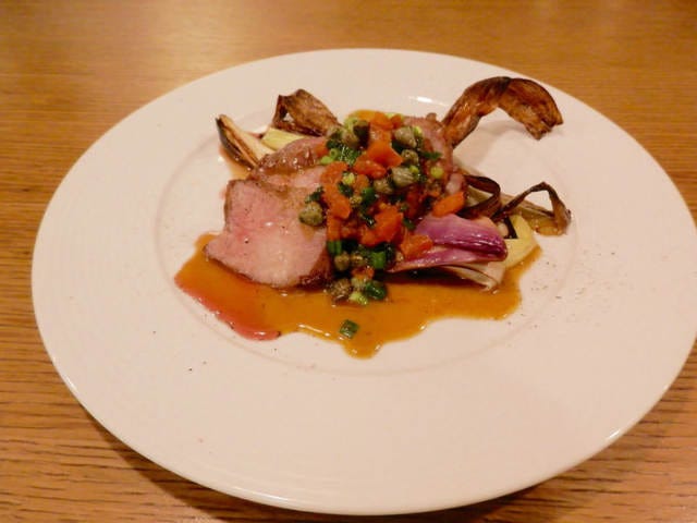 さて、肝心の料理はというと、鹿の塊肉をその場で焼き上げた温製のカルパッチョから始まり、とろっとろの白子揚げ、ケッパーソースが秀逸なマンガリッツァ豚、シャンパンで煮込んだ大山地鶏と続く。