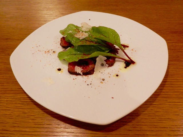 蝦夷鹿のカルパッチョ 赤ワインバルサミコソース/1,200円