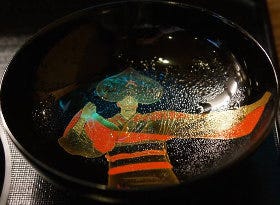 特注だという、おわら風の盆を描いた輪島塗の椀も素晴らしい。