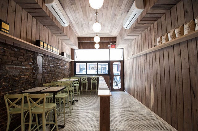 シーティングスペースもゆったりしていて、ちょっとレトロなインテリアが、昔ながらの味わいのあるベーグルという創業者たちの思いを反映している。