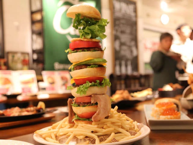 昨今ハンバーガーブームは加速しており、昨年はShake Shackやティーズビガーバーガーなど、海外から日本初上陸系のハンバーガーショップが続々とオープン。そんな人気店と並ぶくらいインパクトがあるのが、今回紹介する東京駅構内のレストランゾーン『グランルーフフロント』にある「HAMBURG WORKS(ハンバーグワークス)」の“ウルトラタワーハンバーガー”だ。