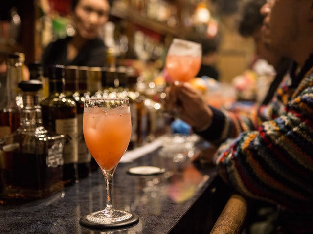 昭和の風情を感じる懐かしい空間でナチュラルワインと餃子を楽しむ