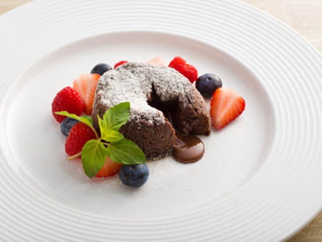 出来立てアツアツのケーキから、トロリとしたチョコレートが流れ出す至福の瞬間を楽しみたい一皿。
