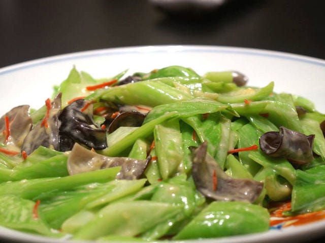 銀座「赤坂璃宮」腐乳炒芥菜。