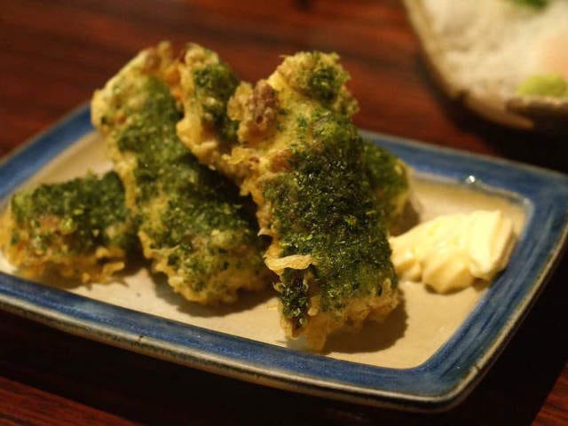 エメラルドのごとく青海苔が輝き、ちくわ磯辺揚げにありがちな、貧相感が微塵もない。