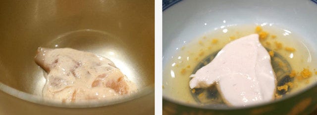 さらには、鱈から取り出した白子を直ちに漉して、練り、昆布だしとウニの汁に横たえる。