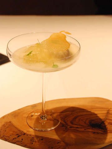 (洋梨のソルベ、和梨&洋梨のコンポート、すだちのゼリー、ソーダ、ワサビ)