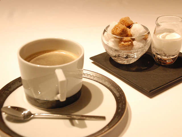 最初のアミューズで出てきた黒い平皿、最後のドリンクで出てきて、カップを固定できるソーサーなど、どんな器で登場するかにも、ぜひ注目してほしい。