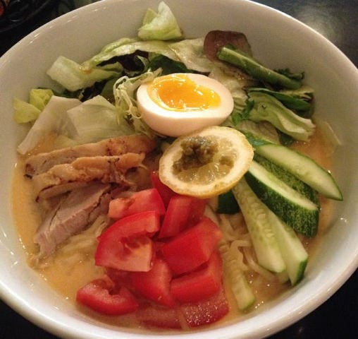 個人的に特にお勧めなのは、胡麻タンタン麺だ。胡麻と味噌でより健康的。ピリ辛の味付けでさらにからだが温まる。