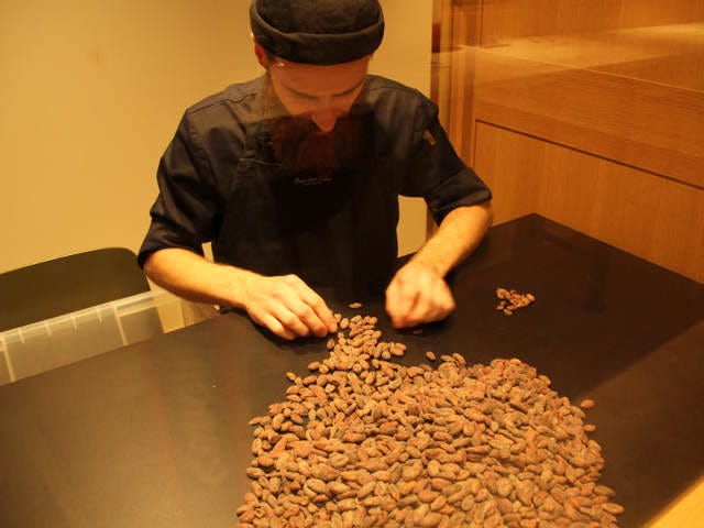 チョコレートの味わいを左右するカカオ豆は、世界的に有名なふたりのプロフェッショナルのおかげで、マダガスカルやベトナム、ブラジルなど世界中の農家から高品質なものを仕入れることができる。そのカカオ豆を徹底した温度、湿度で管理し、さらに形や大きさ、状態の良いものを手で選別するというこだわりよう。