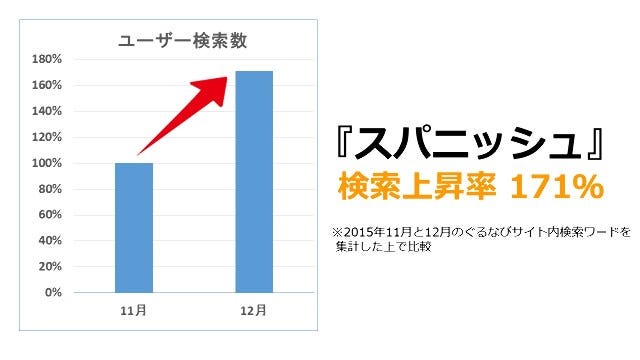 結果として、飲食店情報検索サイト「ぐるなび」ユーザーが、パエリアをはじめとするスペイン料理の総称『スパニッシュ』を検索する回数が急上昇する結果につながったようだ。