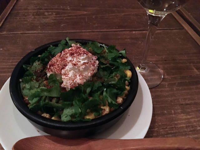 食中酒としてのポテンシャルが高い、テキーラの新しい側面を楽しむためのフードも数多い。「灼熱のエローテ」はメキシコの代表的な屋台料理のアレンジ、現地では焼きトウモロコシそのものにマヨネーズやチーズ、チレ(唐辛子)を塗って食べる。