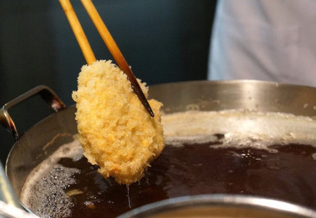 この国のある甘い油をまとった衣が、豚肉を、穴子を、キスを、エビを、牡蠣を、小柱を包むのだから、こりゃあたまったもんじゃありませんぜ旦那。