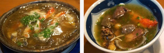 スッポンの濃い出汁の中で、さっと火が通されたモツ類をいただき、すかさず熱燗を飲む。