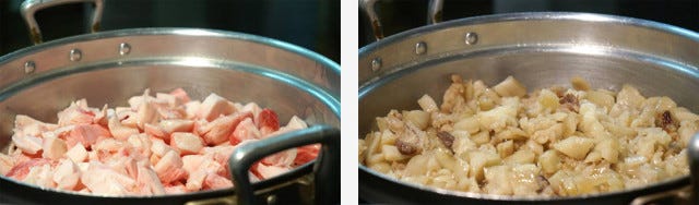 「ぽん多本家」では、毎日、少量ヘットを混ぜたラードを1時間弱かけて炊く。