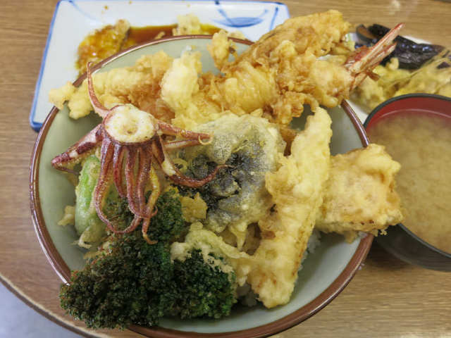 素材によって生姜が利いたタレだったり、カレー塩だったりと、味付けが変わるのも新鮮。丼鉢に乗り切れない天ぷらは、別皿でたくさん出されることも!ボリュームがあるのに、すっきりとした油でサクっと揚がっているのも魅力だ。