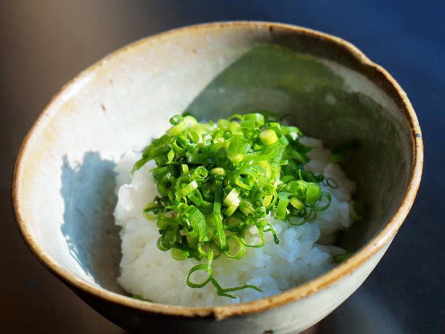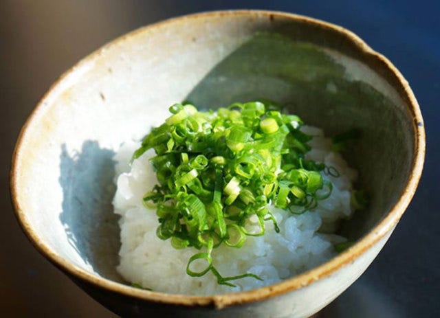 御飯の甘みを葱の辛味がほどよく引き立て、痛快な食感とご飯との対比も楽しく、こりゃあ止りませんぜ旦那。