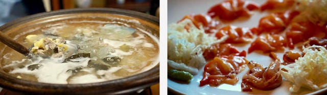 やまさ旅館でスッポン鍋と刺身。ふうっ。