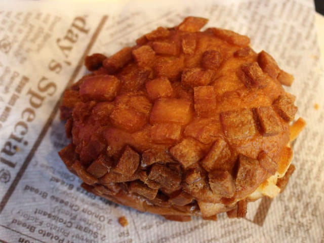 パンの周りに正方形のラスクがついているのは、「ブラウニー」のサクサクチーズカレーパン。