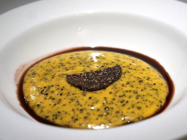 ヴォークリーズ産黒トリュフのかき卵。「コートドール」にて。