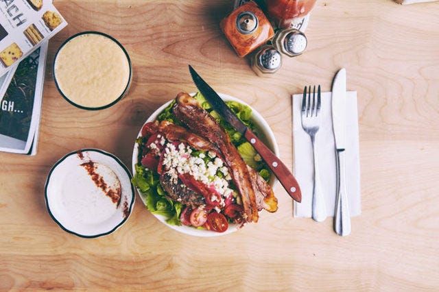 炭水化物を取りたくない人のために、パンなしのバーガーサラダもある。人気の高いのは、神戸バーガーサラダとグリークバーガーサラダだ。