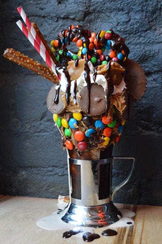 最も人気のあるミルクシェイクはSweet N Salty。ピーナツバター味のアイスクリームに、プリッツェルやチョコレートが加わる。こんな高カロリーの飲食のために朝晩問わず、極寒でも行列する人たちがいるのだから、まったく驚き呆れてしまう。