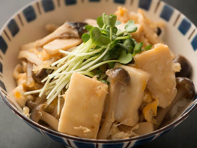 手早く調理できるよう、火の通りやすい「きのこ」と「はんぺん」をメインの食材にした簡単丼。玉子は2回に分けて鍋に入れて、表面がトロッとしたツヤのある仕上がりを目指そう。
