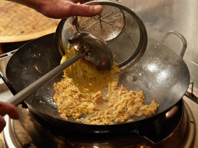 「貧乏人」なんて言葉の使い方は穏やかではないが、これは実際にそういう意味合いの料理名を持つ現地メニューなのだという。中国・杭州の麺屋台などで主に朝食べられるそうで、使用するのは中華麺とキャベツ、卵だけ。