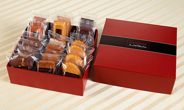 20世紀最高の料理人と称される巨匠 ジョエル・ロブション氏監修のブランジュリー&パティスリーの焼き菓子詰め合わせだ。マドレーヌ、ブラウニー、フィナンシェなど、厳選された食材を使用し、高い技術で手間ひまかけて作られたお菓子は、とっても贅沢な味わい。
