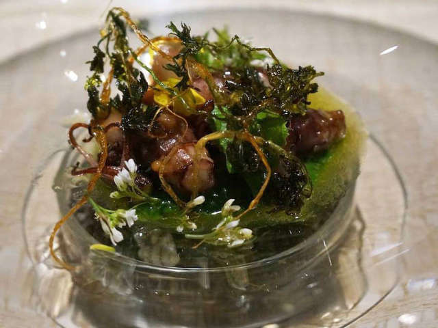 オコゼは、酸味を忍ばせた黄蕪のソースと合わせ、一見たくましいこの魚のエレガントさも教えてくれる。