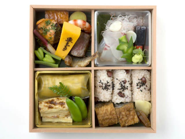 芸者衆の踊りとあわせて注目したいのが、新橋の料亭(新喜楽・金田中・東京吉兆・松山・米村・やま祢・ふぐ料亭wanofu)が「東をどり」に限り手を合わせ、プライドをかけて競う「松花堂」と「鮨折」という名のお弁当。