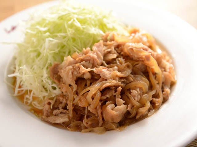 ジューシーに仕上げるポイントは、極薄切りの豚バラ肉を使うこと。さらに、肉をタレに漬け込まず、後からかけることで、焦げずに香りの良い、汁だくでやわらかな生姜焼きに仕上がる。